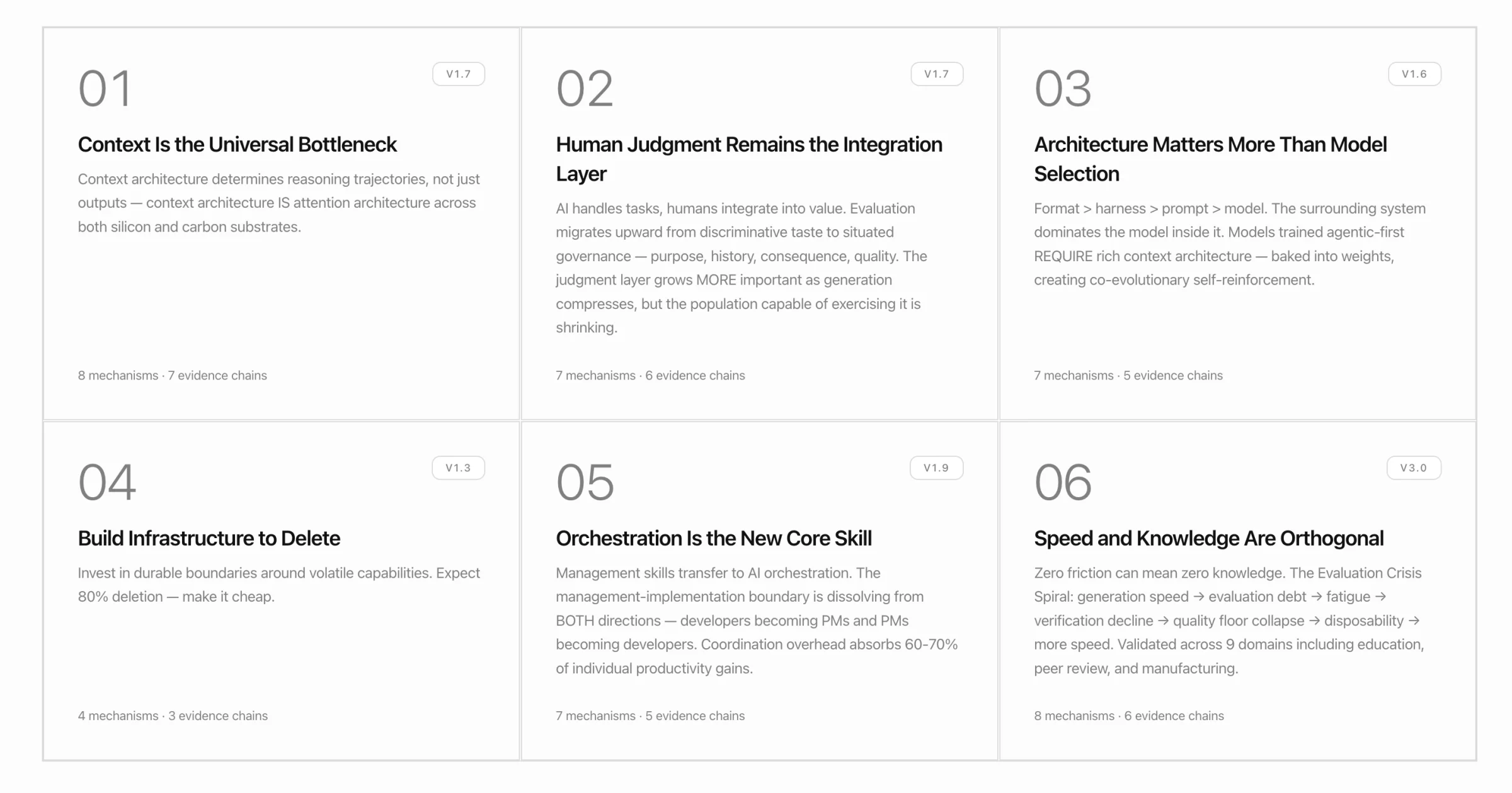 Author of the Six Laws of AI-Era Software Engineering — a framework derived from 6,400+ articles and 256+ cross-domain syntheses. Documented the Evaluation Crisis Spiral: as AI generation speed increases, human evaluation capacity degrades. Validated across 9 domains including education and peer review.